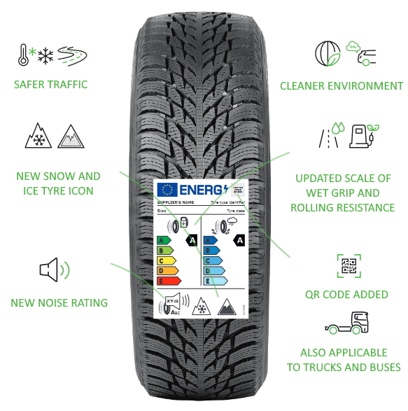 Europe is the first region in the world to use ice tyre icons on tyres. In addition, the labels have an iceberg symbol and a QR code that opens a European database. The amendment shall take effect on 1st of May. The new labels are meant to help consumers better compare different tyres and to lead them to choose safer, more environmentally friendly ones.